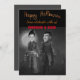 Personalize seu próprio cartão de Dia das Bruxas com as saudações de preto, cinza e branco do Dia das Bruxas.Um rei e rainha, príncipe e princesa, bruxa e bruxa, idades escuras.Castelos mágicos e imagens escuras. Drácula e sua noiva.ideia de Casal halloween.Criativo e engraçado único.