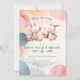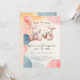 Um convite doce e encantador para a sua reunião de Páscoa. Almoço, brunch ou colheita no jardim. Um coelho menino e uma coelha menina com uma cesta de ovos de Páscoa.