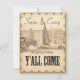 Há um toque de hospitalidade ao sul neste design de casamento temático do país excelente que tem um grande "Y'all Come" e apresenta uma fotografia em tons de sépia de um celeiro e equipamento agrícola no fundo. Personalize usando o modelo fácil para digitar seus próprios nomes e data e detalhes no verso. Procure ID651 para ver todos os produtos correspondentes neste design de casamento.