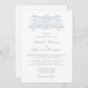 Este convite de casamento incorpora um eterno, uma estética clássica com uma elegante cor azul clara e um gráfico delicado de um grande patrimônio ou local. O design reflete o luxo, a tradição e o refinamento, fazer-o a escolha perfeita para casais que buscam um olhar sofisticado e de escala superior. Ideal para um casamento com um toque de prestígio e charme do velho mundo, este convite trará o tom para uma celebração memorável.