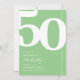 Apresentando um convite de aniversário 50º verde e branco moderno que combina perfeitamente o encanto do mundo antigo do número de letra serif ousado '50' com um modelo personalizável moderno e amigável. Este convite não é apenas um cartão, é uma marca significativa para estimar o marco de fazer 50 anos.