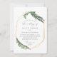 design ousado moderno com uma estrutura geométrica dourada com uma bela folhagem de folha de cor d'água. Esta elegante coleção rústica é uma adição de excelente a um casamento de outono ou primavera e apresenta todos os produtos necessários para o seu dia especial - guarde as datas, os convites, os planejadores de mesas e muito mais.