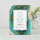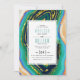 Fatia verde, azul e cor de pêssego com veias de folha de ouro, convite de casamento geode moderno de verão. Um design de casamento moderno e elegante com uma fatia de agate e um quadro branco com a sua redação.