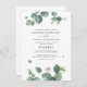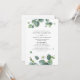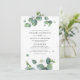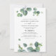 Verde Botânico Eucalyptus deixa um convite para casamento que você pode modificar facilmente com seus detalhes de casamento. Apresentando folhagem suculenta com tipografia moderna sobre fundo branco
