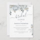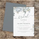 Um simples convite elegante para chá de panela com folhagem azul verde-clara floral, simples minimalista botânico, bouquet de rosa azul empoeirado, elegante folha azul-prata, estilo design verde-folha-sábio, texto de letra com script caligráfico moderno, chá de panela tipográfico branco, outono evento primavera de verão, estilo romântico na moda-da-moda, design de prata da cinza azul. Trabalho de arte é desenhada à mão por Laura Lacina,