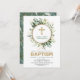Celebre o batismo do seu filho com este elegante convite botânico temido que apresenta uma elegante aquarela eucalipto verde e dourado