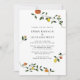 Cartão de convite de 5 x 7" com tipografia moderna e mínima e verde acentuado com limões e marigolds.