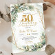 Convites Verde botânico moderno folha de ouro 50 anos