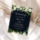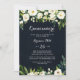 Este convite verde azul-real para a Quinceañera é perfeito para uma festa de aniversário rustica de 15. O design apresenta elegantes pedras brancas de aquarela com folhagem verde em fundo azul escuro.