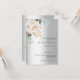 Um fundo de olhar mal prateado. Uma flor branca, florais, eucalipto verde. Personalize e adicione seus nomes e detalhes. Voltar: adicione o URL do seu site de casamento ao código QR para obter detalhes e/ou RSVP.
