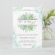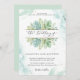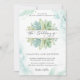 Um convite de casamento elegante e único com uma cor de água refinada em verde macio, turquesa, aqua e tons azuis empoeirados. Verde botânico atrativo no centro em tons azuis, verdes, sábios e verdes limões claros. Dourados detalhes nas folhas e nos punhos de areia. Elementos modernos de caligrafia escrita à mão. De volta em tom verde pálido elegante. Parte da nossa coleção "Airy Blue and Green Watercolor" com vários produtos de coordenação.