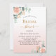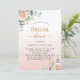 Um fundo rosa de ouro e gradiente branco. Decorados com ouro-rosa e flores cor-de-rosa, flores rosa e folhas de eucalipto, borras, verde e borras de ouro. Personalize e adicione o nome da noiva a ser e os detalhes da festa. Letras pretas e ouros coloridas. Traseira: rosa dourado e cor de fundo branco do gradiente.
