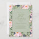 Belo e elegante pincel cor-de-rosa e marinho azul-d-água floral no convite de aniversário verde-menta 50º para mulheres. Entre em contato conosco para obter ajuda sobre a personalização ou produtos correspondentes