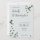 Com um layout elegante e folhas brancas de eucalipto dançando ao redor deste convite de casamento, mostre seu estilo moderno e único. Sage verde e pincel cor-de-rosa parearam bem neste design totalmente personalizável. Inclua seu monograma, delicadamente posicionado acima da data do casamento. Um belo convite para um casamento com temas botânicos.