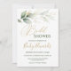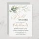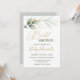 Este design apresenta folhas de ouro aquarela com um roteiro elegante para Chá de panela em cor de ouro.