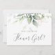 Cartões de proposta de dama de flores com eucalipto aquarela e folhas de ouro.