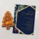 Este verde de Natal moderno | O convite para comemorar o vamos é perfeito para o seu simples casamento no inverno. Concebidos com folha de ouro falso geométrica e uma aquarela botânica minimalista com toques de eucalipto verde e de winterberry vermelha. Tudo em um clássico fundo azul marinho. Estes elementos dão-lhe uma sensação moderna, mas elegante, de completar a aparência que você quer! Você pode personalizar com suas próprias fotos ou mantê-las como estão. Não se esqueça de olhar o resto da coleção para completar o tema do casamento!