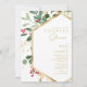 Este verde de Natal moderno | o convite para chás brancos é perfeito para o seu simples casamento no inverno boho. Concebidos com folha de ouro falso geométrica e uma aquarela botânica minimalista com toques de eucalipto verde e de winterberry vermelha. Tudo num fundo branco clássico. Estes elementos dão-lhe uma sensação moderna, mas elegante, de completar a aparência que você quer! Você pode personalizar com suas próprias fotos ou mantê-las como estão. Não se esqueça de olhar o resto da coleção para completar o tema do casamento!