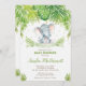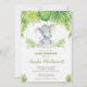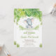Convite chique do chá de fraldas do elefante, caracterizando o elefante desenhado mão adorável do bebê da aguarela e a folha tropical da aguarela. Personalize-a com seus detalhes do partido de chá de fraldas facilmente e pressione rapidamente, simplesmente a personalização ele botão para rearranjar e formatar mais o estilo e a colocação do texto. Podem ser personalizados para o bebê polvilham, o tea party do chá de fraldas, o chá alto do chá de fraldas, o chá de fraldas de Co-Ed, etc.