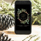 Este maravilhoso convite para o casamento de feriado apresenta um falso quadro geométrico dourado com folhas de ouro correspondentes, verde de Natal e groselhas vermelhas num fundo negro moderno. Perfeito para o seu casamento no inverno elegante.