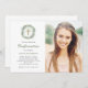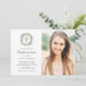 Este convite de Confirmação simples e minimalista apresenta um elegante cheio de aquarela de verde-rústico e folhagem, com uma cruz de ouro falsa e sutil abertura de aquarela verde no centro, sobre fundo branco. Sua foto também é apresentada.