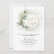 Este elegante CONVITE PARA O CASAMENTO apresenta uma aquarela pintada à mão, folhas de Eucalyptus, ouro e belo verde.