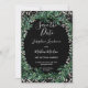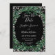Estes cartões salve a data apresentam folhas de aquarelas verdes e floretes brancos sobre fundo preto. Há um monograma atrás. Estes convites fazem parte de uma coleção de casamento que inclui outros produtos de casamento correspondentes. Visite as páginas de coleta em nossa loja para ver a gama de cheios de casamentos e produtos de noiva que você pode personalizar para o seu casamento.