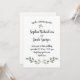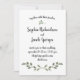 Este adorável convite mínimo de casamento tem folhas verdes, cor d'água, em um fundo branco e limpo. A tipografia do roteiro de tendências adiciona um novo olhar para tornar este convite perfeito para um casamento rústico, minimalista ou qualquer elegante casamento botânico ao ar livre.