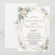 Design de cartão encantador com flores rosadas, cor-de-água, cor-de-rosa delicada, folhas verdes e douradas, uma falso estrutura dourada, divisor floral, sobre fundo branco. Use a ferramenta Personalizar para adicionar suas informações. Para itens correspondentes, por favor, visite a minha Coleção Floral Dourada Greenery.