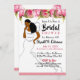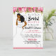 Este elegante chá de panela floral roxo apresenta uma noiva afro-americana vestindo um vestido branco contemporâneo. Envie um convite que seja bonito e elegante.