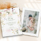 Anuncie seu Janto de ensaio com esses cartões lindos que apresentam "A Noite Antes" em uma escrita de caligrafia moderna e tipografia decorativa contra uma florescência de flores de jardim e verde. Personalize facilmente as suas informações pessoais na frente e a sua fotografia especial no verso.