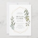 Convites Verde Folha Mínimo e Terrário Geométrico Dourado