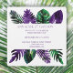 O convite para casamento de folhas verdes tropicais e roxas de ameixa é versátil para temas de casamento costeiros e praias. As folhas e samambaias da Monstera podem ser facilmente redimensionadas e movidas. Transferir folhas tropicais vibrantes para uma variedade de outras formas de cartas.