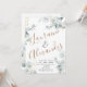 Este design apresenta um desenho floral em aquarela. O tema vem em verde, branco e dourado. Este simples design minimalista e elegante apresenta um fundo branco com folhas de eucalipto com buquês de arranjo de folhas elegantes feitos em efeito de aquarela. Uma aquarela abstrata verde claro com efeito de estrelas cintilantes adiciona mais detalhes à peça. O design intrincado combina bem com um casamento de outono, verão e primavera. Disponível como um grande combo de pacote com papelaria de casamento. Fontes de caligrafia manuscrita moderna são usadas em letras douradas e brancas.
