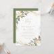 Este verde de ouro geométrico é um convite para chá de fraldas de menino é perfeito para um chá de fraldas ou borrão moderno. A design apresenta uma bela estrutura geométrica dourada com folhas verdes elegantes.