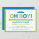 Celebre a chegada do seu bebê com um verde limão de vintage bonito e retrô e um convite para chás de fraldas azuis. Esta moda e um convite adorável está completo com um bigode bonito e uma borda pontilhada de polca. Altere o estilo e a cor da fonte clicando no botão "Personalizar" abaixo da imagem do produto.