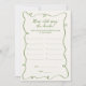Cartão de jogo Quirky e caprichoso 'Quantos anos tinha a noiva?' com uma fonte verde escrita à mão com um quadro verde e texto totalmente personalizável. O cartão de jogo baixável vem num esquema de cores neutras de verde e náusea.