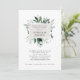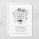 Este convite para chás de casamento simples e na moda apresenta um quadro de tendência de abundante cor d'água eucalipto e uma variedade de folhas verdes com um centro de cinzas macios, sobre fundo branco. Esta design moderna é perfeita para o seu chá elegante e minimalista.