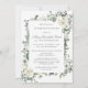A celebração elegante de um convite à vida apresenta uma estrutura botânica de flores brancas e folhas verdes profundas no topo. O nome da pessoa morta está escrito em um texto tradicional. Todo o texto pode ser facilmente editado para criar uma lembrança pessoal.