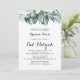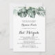 Este convite de morcego floral branco tropical mitzvah é perfeito para um morcego rústico mitzvah. A design apresenta palmeiras verdes folhas buquês com flores brancas adoráveis.