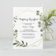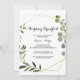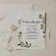 Este convite para o café da manhã de casamento das folhas verdes tropicais é perfeito para uma família simples e amigos dia depois do casamento tomar café da manhã. A design apresenta lindas folhas verdes pintadas à mão, enfeitando um quadro geométrico dourado.
