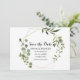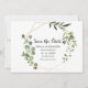 Este casamento de folhas verdes tropicais, exceto o convite de data é perfeito para um casamento simples. A design apresenta lindas folhas verdes pintadas à mão, enfeitando um quadro geométrico dourado.