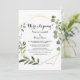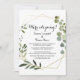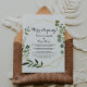 Este cartão de recepção das folhas verdes tropicais é perfeito para um partido de elopeamento poste de destino. A design apresenta lindas folhas verdes pintadas à mão, enfeitando um quadro geométrico dourado. As placas RSVP são vendidas separadamente.