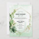 Quer você não consiga se reunir para uma festa devido a diretrizes de distanciamento social coronavírus, ou familiares e amigos distantes estão muito longe, este belo convite por correio permitirá que os entes queridos celebrem seu novo bebê de qualquer lugar. A design apresenta uma moda geométrica dourada moderna, limitada por folhas tropicais exuberantes e verde. O lado inverso tem uma coordenação de lavagem de aquarela de menta macia. As cores neutras do gênero são perfeitas para o bebê ou a menina. Use as ferramentas de design para adicionar os detalhes do chá de fraldas virtual ou personalizar para se adequar ao seu evento.