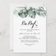 Este convite para churrasco branco de chá de fraldas BabyQ verde tropical é perfeito para um chá de fraldas de casais rústicos ou um borrifo de bebê. A design apresenta palmeiras verdes folhas buquês com flores brancas adoráveis.