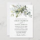 O Cartão de Convite para Casamento de Cores Biológicas Elegantes Modernos inclui folhas de eucalipto, folhagem botânica verde, folhas azuis empoeiradas e outros belos lençóis botânicos.