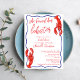 Vermelha Whimsical Ela Encontrou Seu Chá de panela De Lagosta - Um chá de panela temático náutico e costeiro, convidado com lagostas vermelhas e cinzas azuis, desenhadas à mão, moldura de rabo. Com letra manuscrita e texto de bloco na moda em vermelho brilhante. Perfeito para um chá de panela temático Maine ou Nantucket, pescando ou lago, com tema "bridal", "marisco", "marisco", "lagosta de verão", "jato de lagosta de verão" ou "praia" e "chás de casamento temáticos do oceano". Celebre a noiva por estar com um convite que gritar que seja verão! Disponível para pedidos no impressão ou como um download digital instantâneo, envie-o facilmente via texto, email ou mídia social.