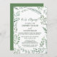 Esta coroa rústica verde que estamos a preparar apenas a recepção é perfeita para uma festa de elopeamento ao ar livre. A design apresenta um belo e caprichoso quadro de folhas de aquarelas, plantas e verde. As placas RSVP são vendidas separadamente.