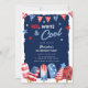 Acenda sua festa de aniversário de 4 de julho com nosso convite para a festa 'Vermelho, Branco e Legal'! Com um pano de fundo azul escuro rústico, nossa design apresenta um modelo de festas de fontes brancas espantoso, enfeitado com robusto vermelho, branco e azul, estrelas e picolés de gelo patrióticos. Eterno, porém, a tendência, esses convites são tão únicos quanto inesquecíveis!