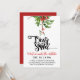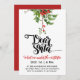 Este convite em vermelho e branco tem um roteiro moderno dos Papais noeis queridos e um mistério vermelho e verde de aquarela | bagas ocas. Os textos são personalizáveis e a parte de trás é vermelha. Disponível em formato de impressão e download digital.